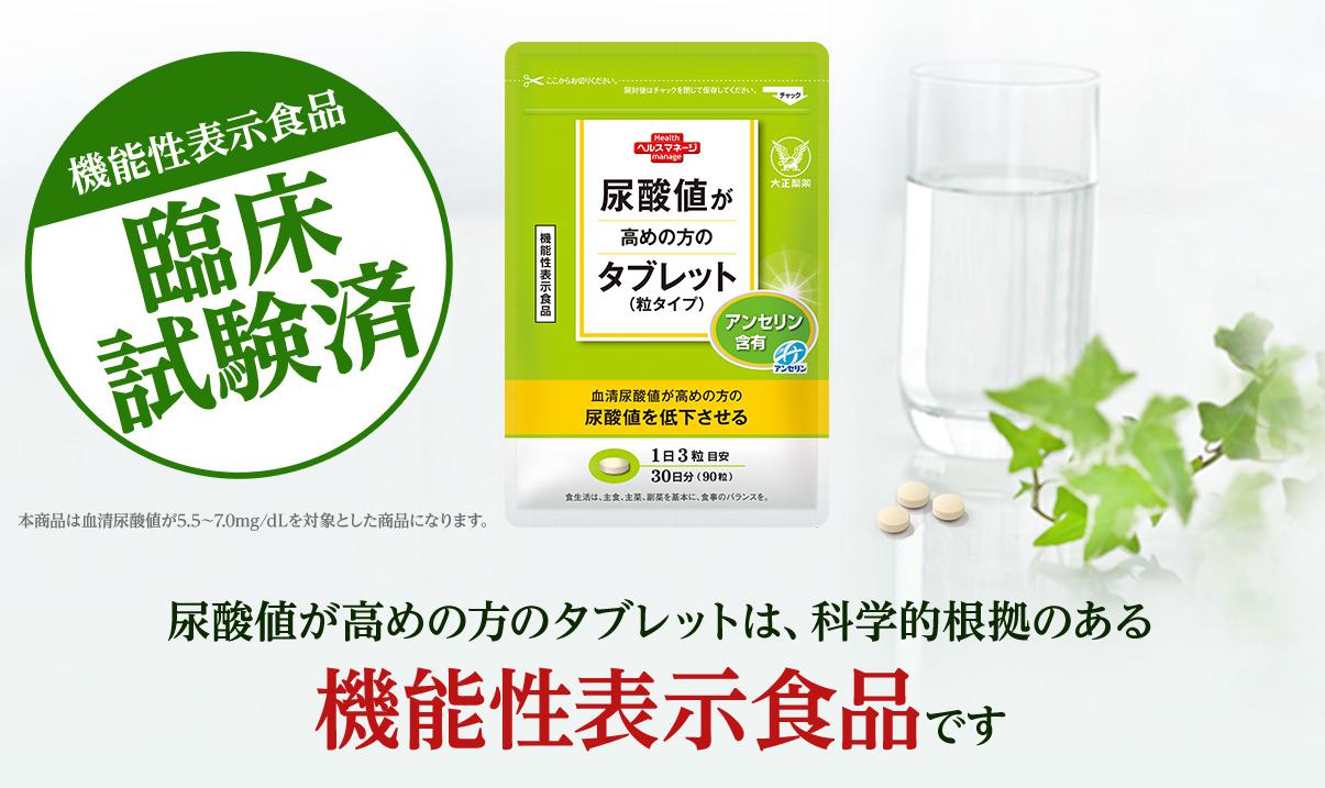 そこで知ってほしいのが『機能性表示食品』のサプリメントです。大手メーカーからも男性の高めの尿酸値に特化したサプリが発売されているので、なかなか結果が出ない人はぜひ試してみて下さい。